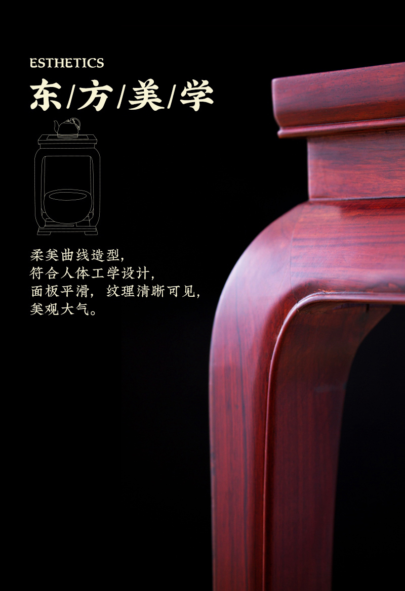 黃金萬兩,不及紅木一方,通體采用百年酸枝木,平整潤滑、光澤耐久,給人一種淳厚含蓄的美。