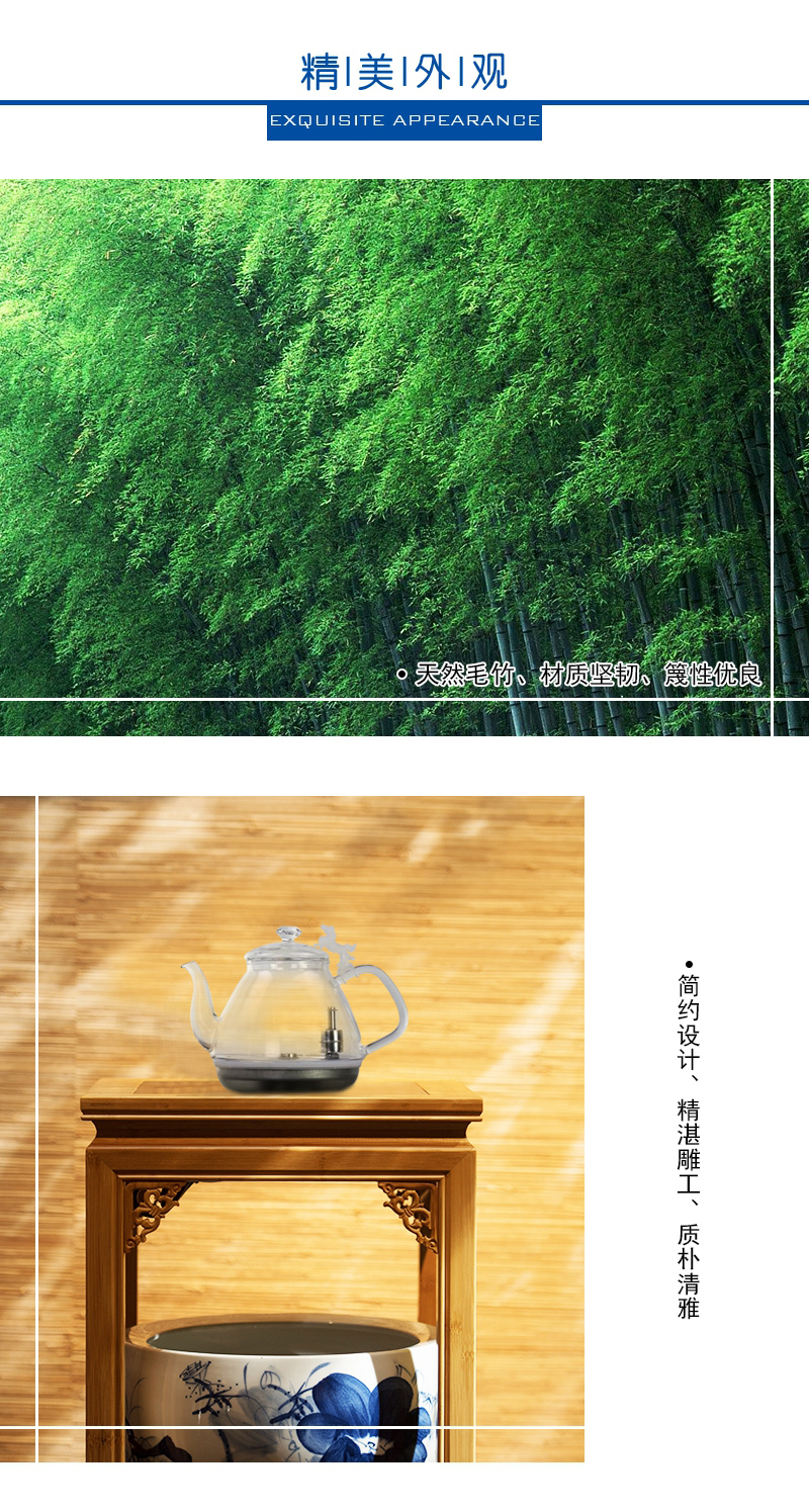 天然毛竹材質,堅韌、簡約、質樸;高硼硅玻璃壺,通透明亮、線條優美流暢;手繪陶瓷缸,古典優雅、光澤耐久。